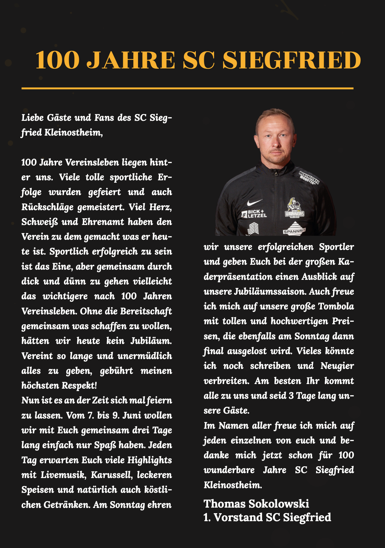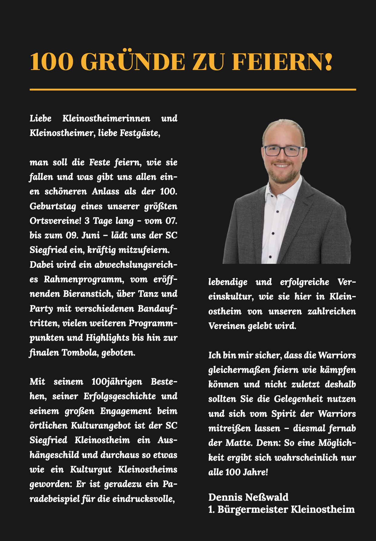 100 Jahre SC Siegfried - Programmübersicht