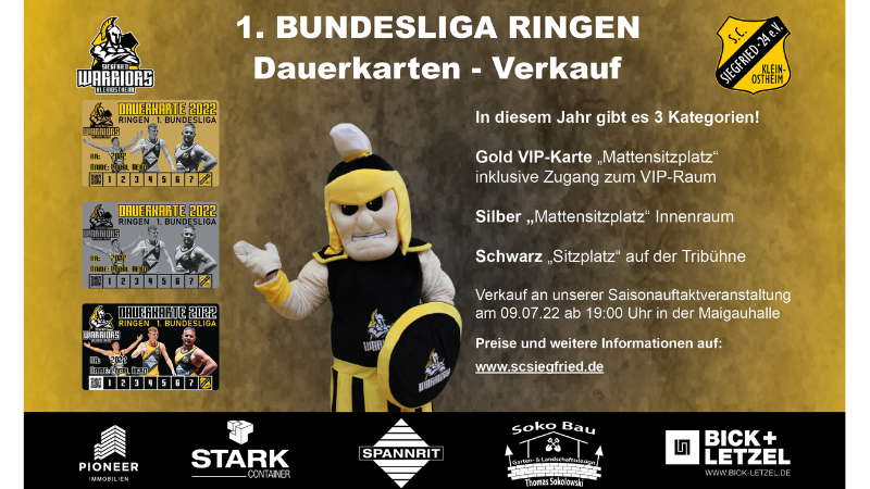 In der letzten Ausgabe des Mitteilungsblattes haben wir Sie über den anstehenden Start des Dauerkartenverkaufes informiert. Dieser startet am 09.07.2022 ab 19:00 Uhr an unserer Saisonauftaktveranstaltung.
