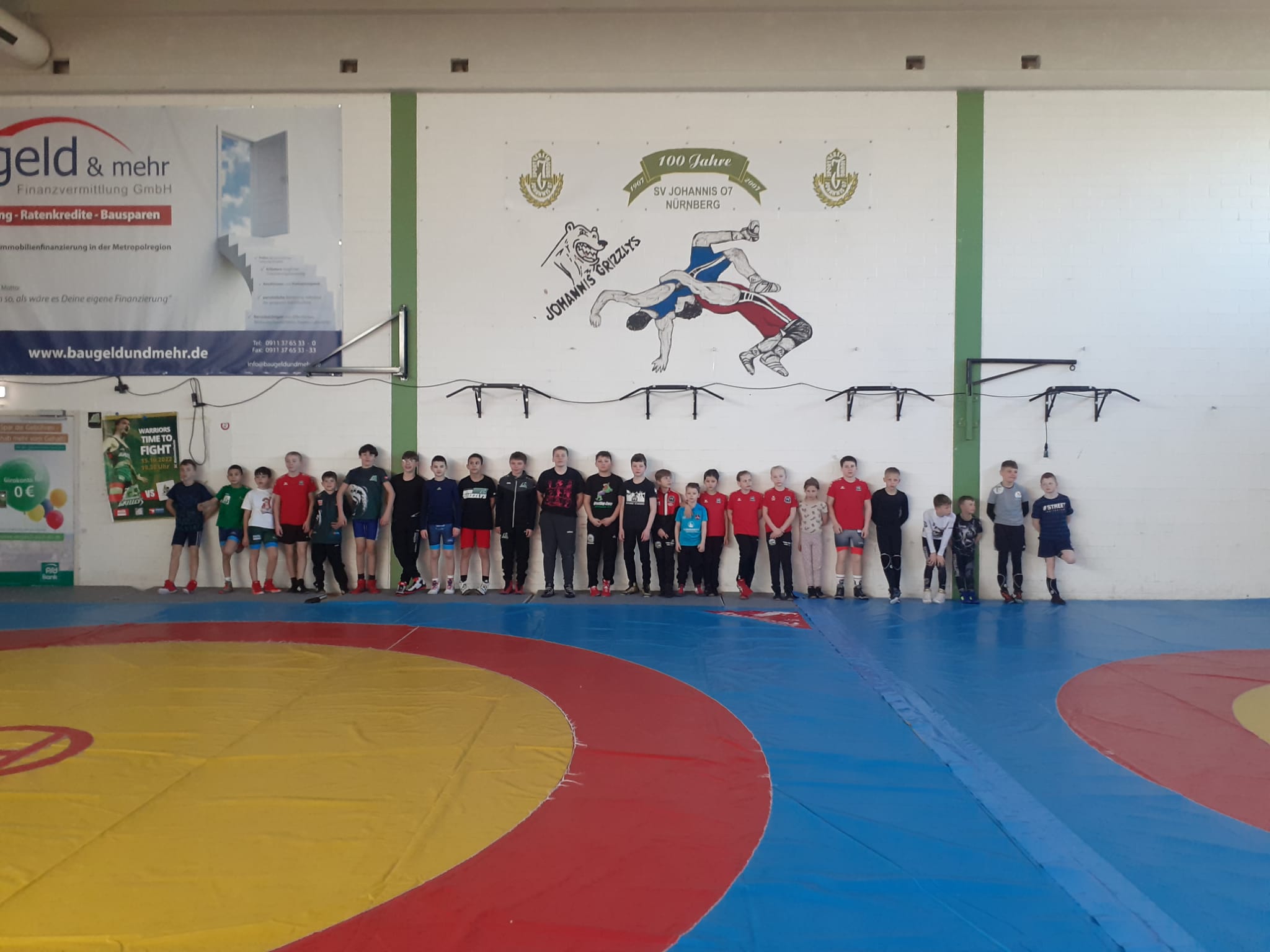 Ziel war das 187 Kilometer entfernte Nürnberg. Der SV 07 Johannis Nürnberg (Grizzlys Nürnberg) lud zu einem 3-tägigen Trainingslager ein. Nach einer ca. 2-stündigen Fahrt mit einem 9-Sitzer, erreichten die Sportler mit ihrem Trainer die Avia Arena. Nach dem Errichten der Bettenlager (Weichbodenmatten), fand nach kurzer Begrüßung die erste Einheit statt. Unter den 37 Sportlerinnen und Sportlern, war neben dem Ausrichter SV Johannis Nürnberg auch der Ringerverein Burgebrach vertreten. Die erste Einheit wurde federführend durch den Trainer des SV Johannis 07 Nürnberg geleitet. Hierbei wurden die Techniken "Schlüpfer" und "Saitiev" verfeinert. Zum Abschluss hieß es dann nochmal 5 x 2 Minuten ringen.